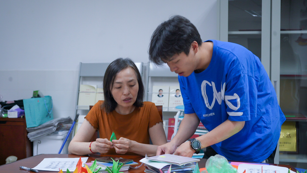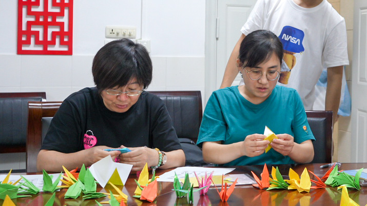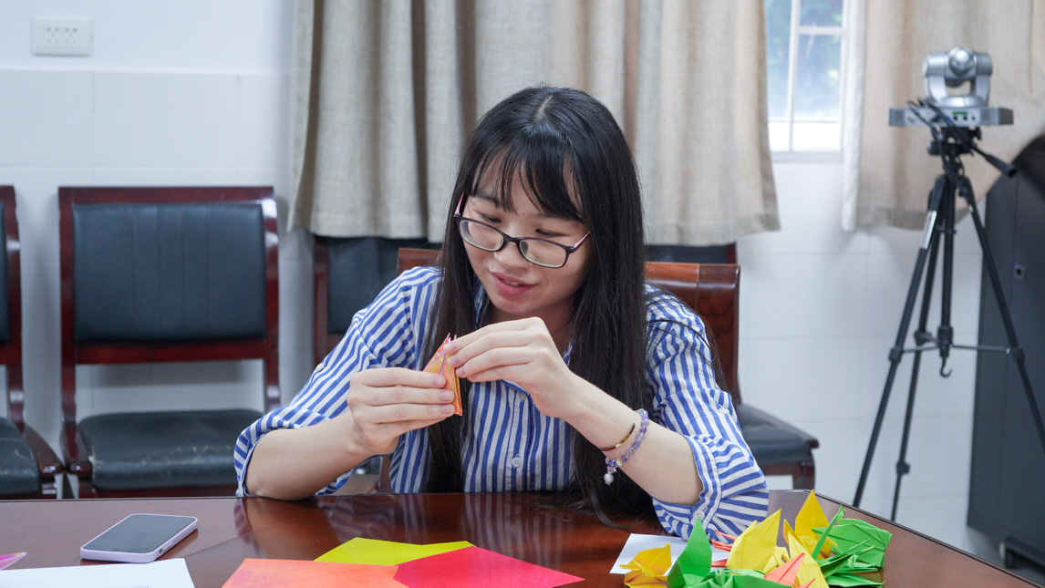 教师于动科楼B105集中折叠千纸鹤,为毕业生送去美好祝福。