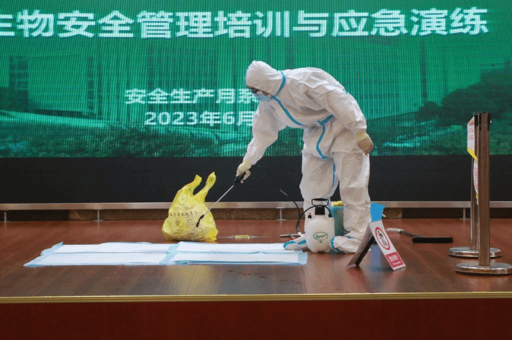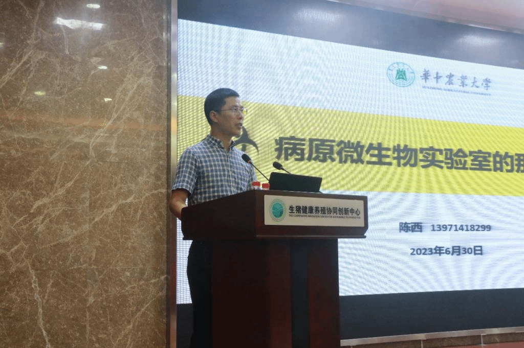 在生猪健康养殖协同创新中心学术报告厅举行2023年度安全生产月系列活动之生物安全培训及现场模拟演练。华中农业大学生物安全三级实验室安全负责人陈西博士为在座师生作了题为“病原微生物实验室的那些事”的讲座。学院100余名师生参与培训,活动由学院办公室李靖宇老师主持。