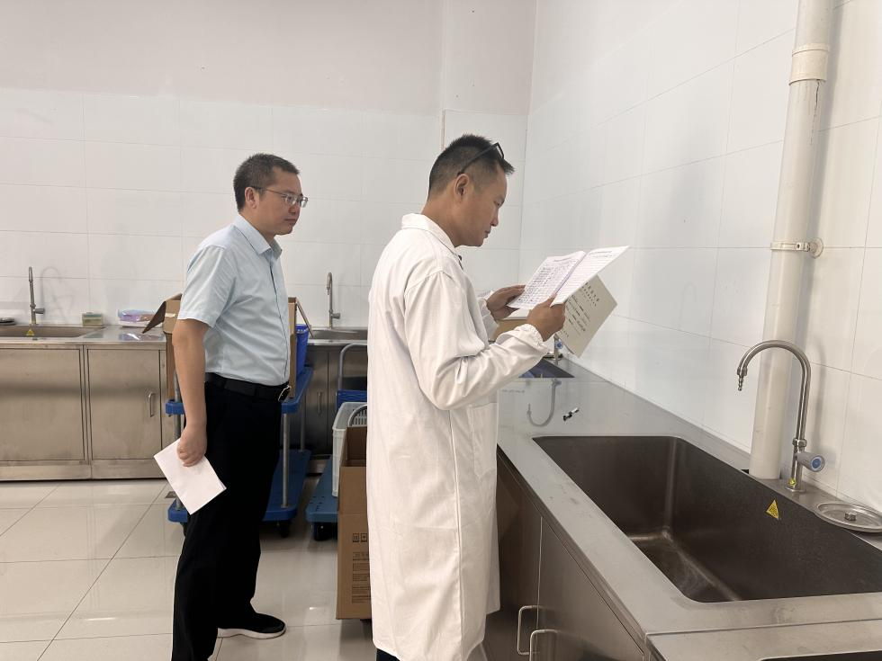 会后,刘兴斌带领四综学院安全督查小组检查了第四综合楼危化品室,他强调要严格按照管制类危化品管理规范和要求,严格做到“五双”管理,暑假期间要做好工作安排,一如既往服务好师生需求,随后来到学院公共高压灭菌洗涤室,他仔细查看每台高压灭菌锅合格证,翻看使用登记记录,他要求相关负责人务必时刻保持安全警觉,特种设备使用时刻不能放松要求,操作必须要持证操作、规范操作,实验过程必须全程值守。其他各安全卫生督察组按照分组安排对学院各楼栋、基地等进行了全方位的检查。