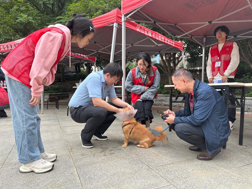 为普及宠物疾病防治知识,营造文明养宠、科学养宠的良好社区氛围,4日当天学院丁一教授、许明副教授和十余名研究生在华农西苑社区开展“宠物义诊”志愿服务活动。