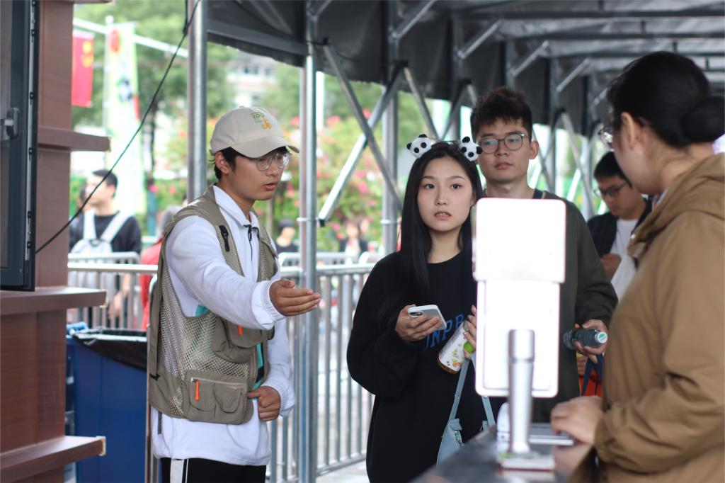 志愿者为游客作指引(通讯员 王汝文 摄)