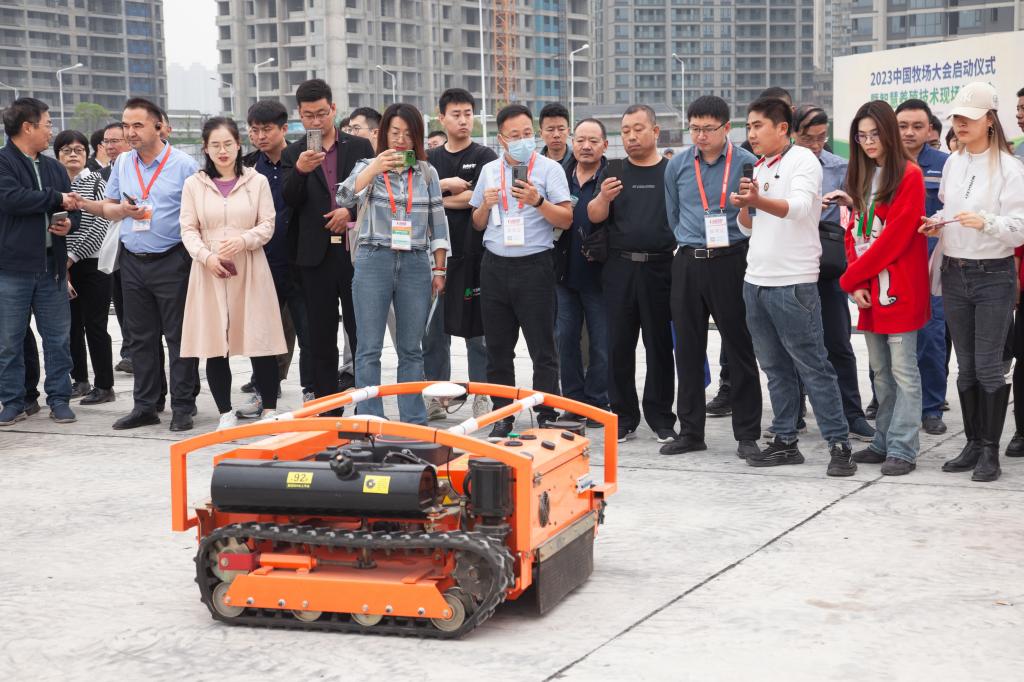 27日上午,山东省农业机械科学院党委书记郭洪恩主持肉牛牦牛智慧养殖关键技术装备现场演示会。会上现场演示了我国最新研发的饲料高效收贮技术、牛场精准分群、饲喂技术等装备。与会的中国农业技术开发中心副主任张辉、中国农垦经济发展中心副主任陈忠毅、中国农业机械流通协会会长范建华等专家学者参观现场新型农机,范建华做工作指导并致辞。