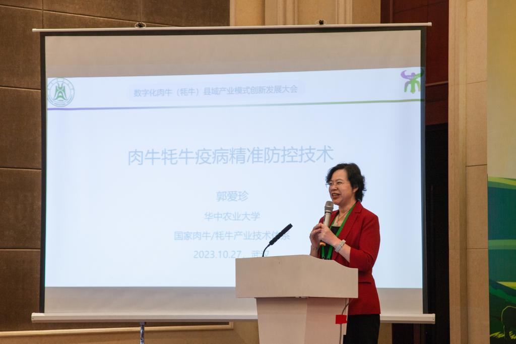 华中农业大学郭爱珍教授在会议上介绍了肉牛牦牛疫病精准防控技术展开(摄影 周信君)