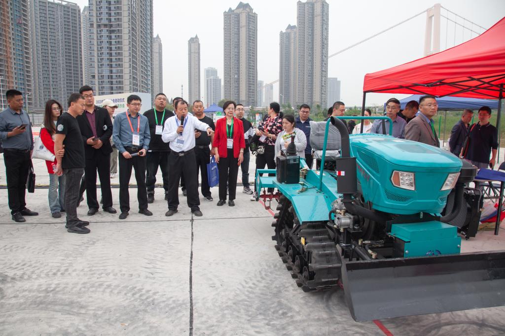 参展者观看新型农机设备运行情况(摄影 周信君)
