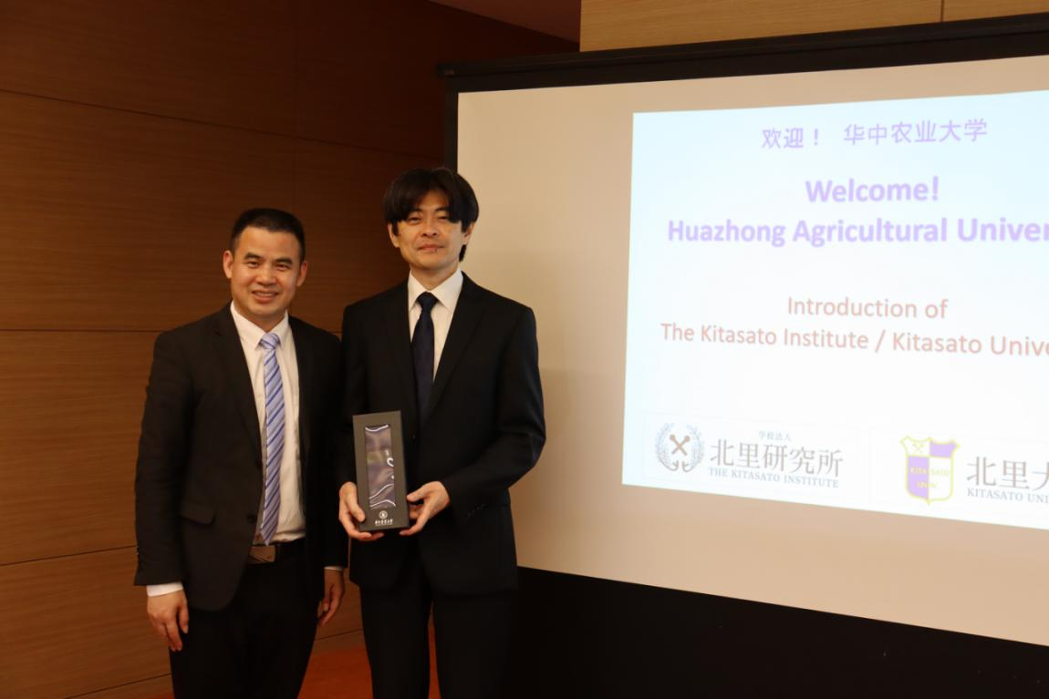 与北里大学国际交流部副部长Kazunari SEI互赠礼物