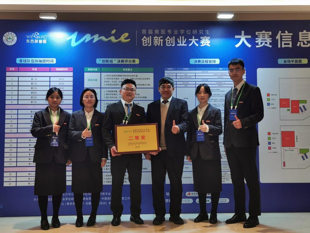 大赛由中国学位与研究生教育学会主办,全国兽医专业学位研究生教育指导委员会、中国兽医协会学术指导,南京农业大学承办。作为首届针对兽医专业学位研究生开展的全国性大赛,围绕“聚焦兽医实践,传承创新奋进”主题,旨在以赛代练、以赛促学、互促共进,激发兽医专业学位研究生创新创业潜能,面向行业产业发展趋势,培养高层次应用型人才,促进兽医专业学位教育高质量发展。大赛共有46家兽医专业学位培养单位参加,分创新和创业两个赛道,共有85支队伍参加初赛,其中60支入围决赛,最终产生一等奖9项、二等奖21项、三等奖30项。五楼自拍