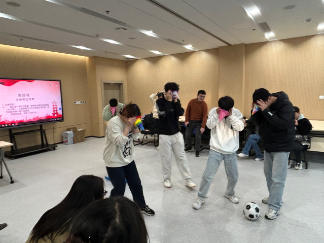 本次趣味运动会包括“知识抢答”“你画我猜”“夹夹乐”“高脚帽足球比赛”4项团队游戏,考验队伍之间的默契。“知识抢答”环节题目涵盖党史党章、实验室安全、学术道德、看图猜词、听歌识曲等各个方面,各组代表从起点跑至指定位置进行抢答,现场气氛活跃。通过知识抢答,支部党员同志们的相关知识得到丰富。“夹夹乐”游戏考验团队成员的耐心和静心,栗绍文评价:“这个游戏很像做科研,有时候快不一定好,静下心,一步一步来,或许更好。” “你画我猜”环节,各组成员互相配合共同作画,充分展示了想象力和协作力。“高脚帽足球比赛”游戏将气氛推向高潮,各组代表在成员指引下争夺足球,活动现场欢笑连连。