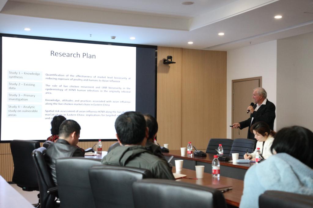 交流访问,并于第四综合楼D207 会议室作题为“Using Epidemic Approaches to Control Animal Disease Epidemics in China”的报告。动物科学技术学院、动物医学院副院长彭贵青教授,公共卫生学系主任赵凌教授、郭爱珍教授、栗绍文教授、李文涛教授、丁一教授、彭忠教授、陈颖钰副教授、张磊副教授及相关专业60余名师生参与了本次交流学习。