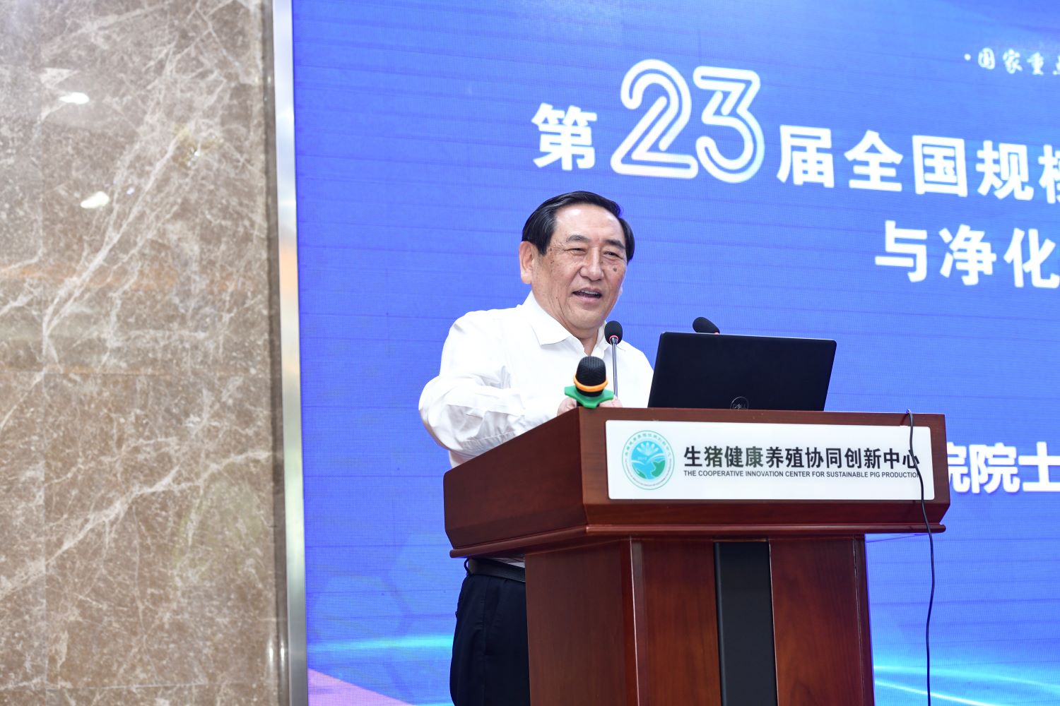 生猪健康养殖协同创新中心报告厅举行。来自全国规模化猪场、大专院校、科研院所、企事业单位及行业生产一线的500余位代表参加了会议。