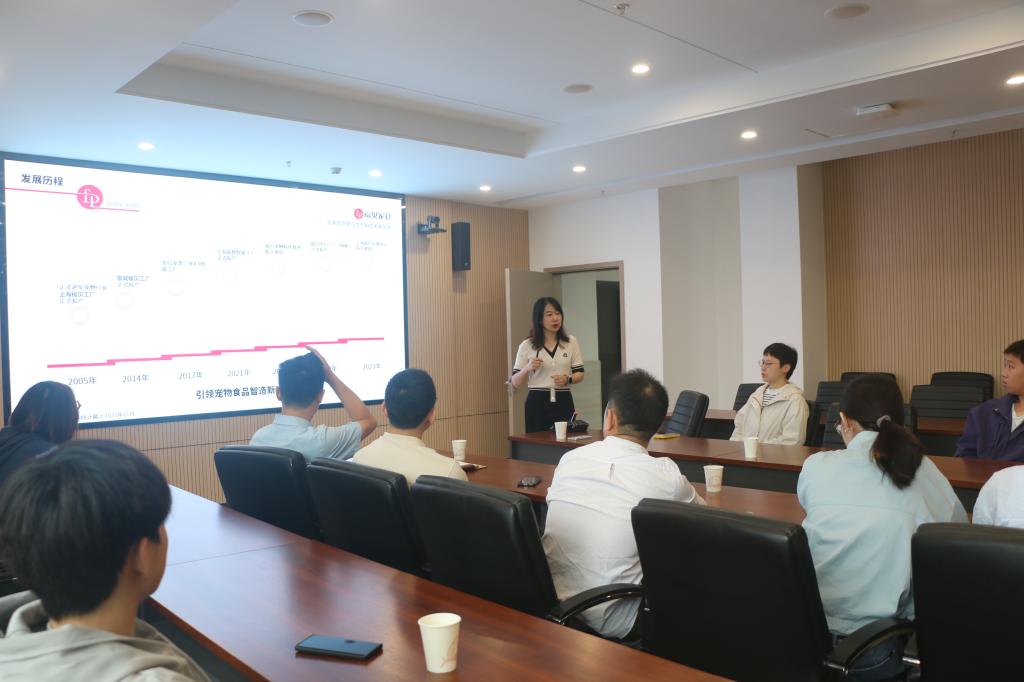 学院所有参赛选手及团队成员参与了接下来的首届“福贝杯”大学生创新创业大赛路演宣传。上海福贝宠物用品股份有限公司研究院研发主管党涵对大赛进行介绍。她介绍到,大赛是上海福贝宠物用品股份有限公司举办的首届全国性宠物赛事,由上海福贝、盘古研究院及国内十一所高校共同举办,以“宠动青春,圆梦未来”为主题,以宠物生态为中心,聚集青年本科生、研究生投身宠物领域的科技创新,推动宠物行业的发展,发现并培养更多的创新人才。此外,她推介了大赛的赛制、各阶段准备的具体事项,上海福贝的宠物食品工厂和生产基地等。会后,参赛选手与老师们就大赛材料进行沟通、讨论、答疑与修改。