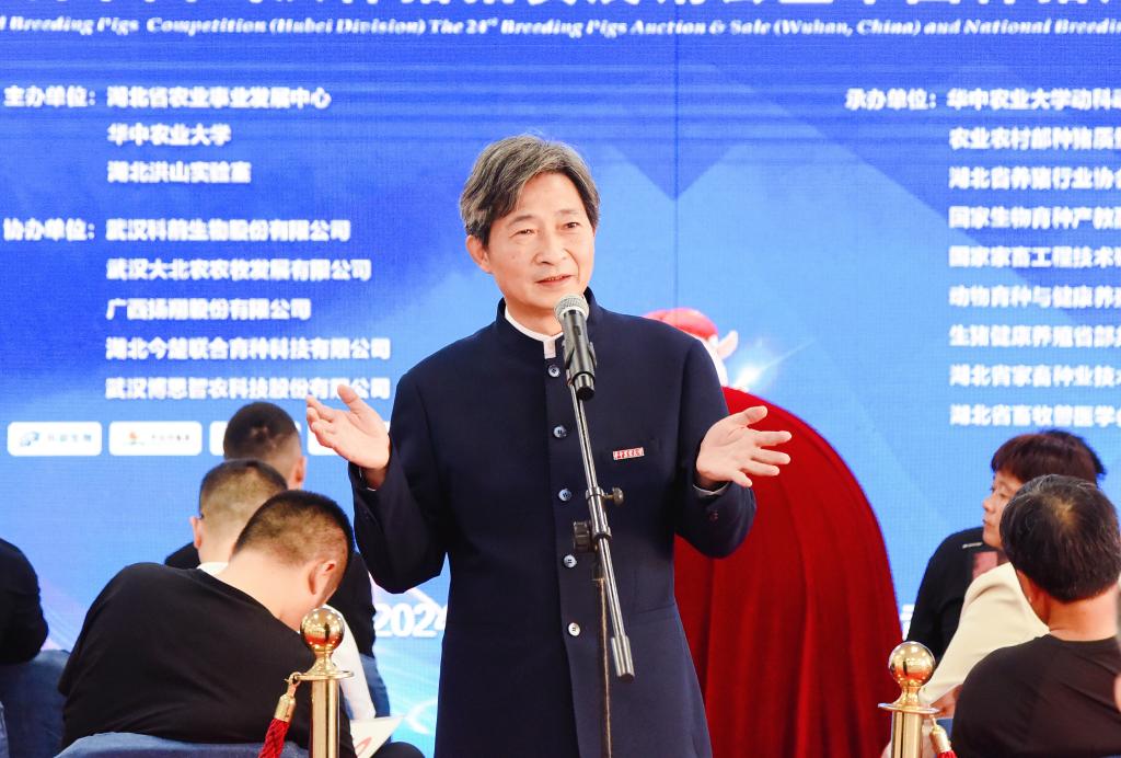 高翅表示,猪肉作为我国居民食物消费的重要组成部分,对我国粮食安全有着深刻意义。同时,优良的种质资源保障了生命的延续,是生命多样性的基础。华中农业大学以奉献对地球和人类都健康的丰富食物为使命,充分发挥在生猪领域的科教与人才优势,注重畜禽种业科技创新能力提升,不断推进科技创新与产业创新深度融合。他指出,我国种质资源的发展与国际先进水平相比还有很大差距,华中农业大学愿与企业一同挺膺担当,迎接数智时代的到来,实现种质资源研究的进步,不断打破对国外技术的依赖,持续为国家生猪稳产保供、牢牢端稳“肉盘子”提供科技与人才支撑。并期待利用本次大会契机携手同行把种猪拍卖会打造成种猪产业健康发展的重要平台和窗口,推动养猪业转型升级与高质量发展。
