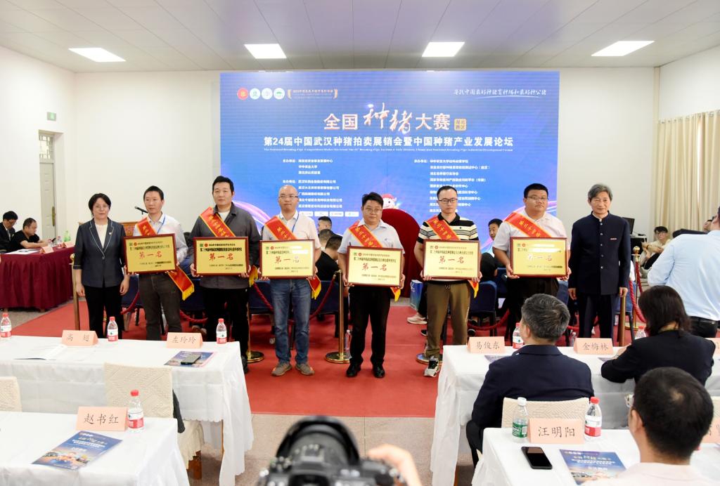本届种猪大赛收测了来自湖北、湖南、江西、河南、福建、广东、广西、四川、新疆等9省(自治区)22家种猪企业送测的262头种公猪,品种涵盖杜洛克、长白、大白、巴克夏等。经过农业农村部种猪质量检验测试中心(武汉)近4个月的严谨测定和科学评估,依据“综合指数、专家组外形综合评分”优秀排名,遴选出15头特优级种公猪公开拍卖,106头优级种猪进行暗标竞购。
