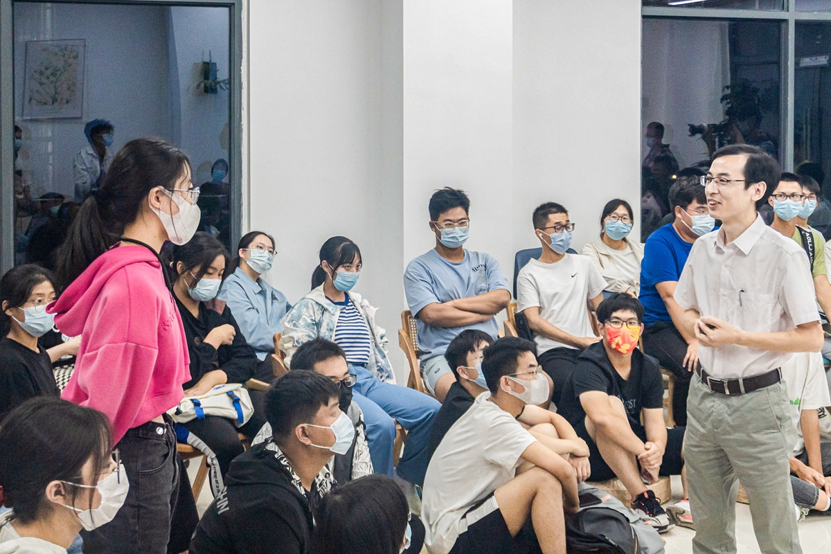 ▲刘小磊教授与新生共探“基因与表型的奥秘”