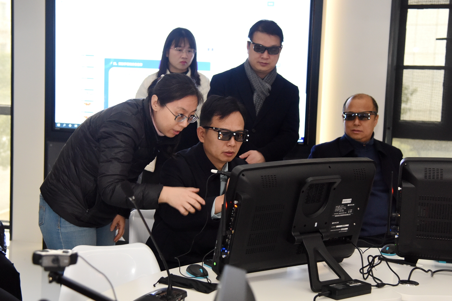 ▲国家发展改革委社会司副司长赵俊强调研元宇宙教室