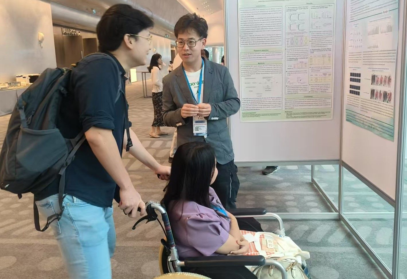 团队海报的展示内容表现出浓厚兴趣,并与学生及教师进行了深入的交流讨论。泰国畜牧业发展部人员、泰国兽医协会会长Pramote Talawat教授等多个单位的专家学者对五楼自拍