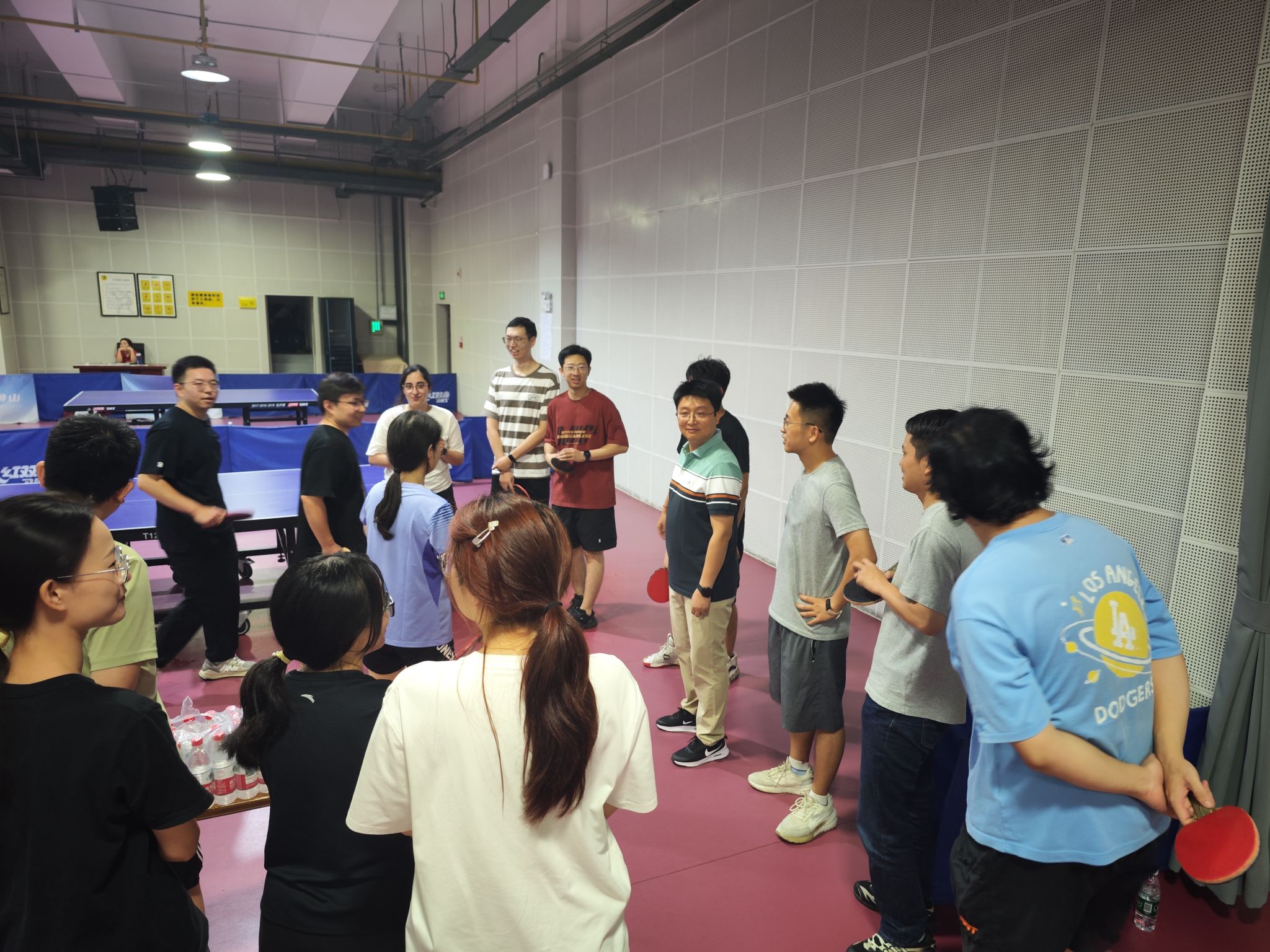 规则确定后,所有选手进行热身运动,以确保能够在比赛中发挥出最佳状态。比赛正式拉开帷幕,现场充满了欢声笑语和紧张的竞技氛围。本次乒乓球赛共进行了九局1v1对决,每场比赛都精彩纷呈,扣人心弦。选手们在场上全力以赴,挥洒汗水。观众席上不时传来阵阵喝彩,气氛十分热烈。