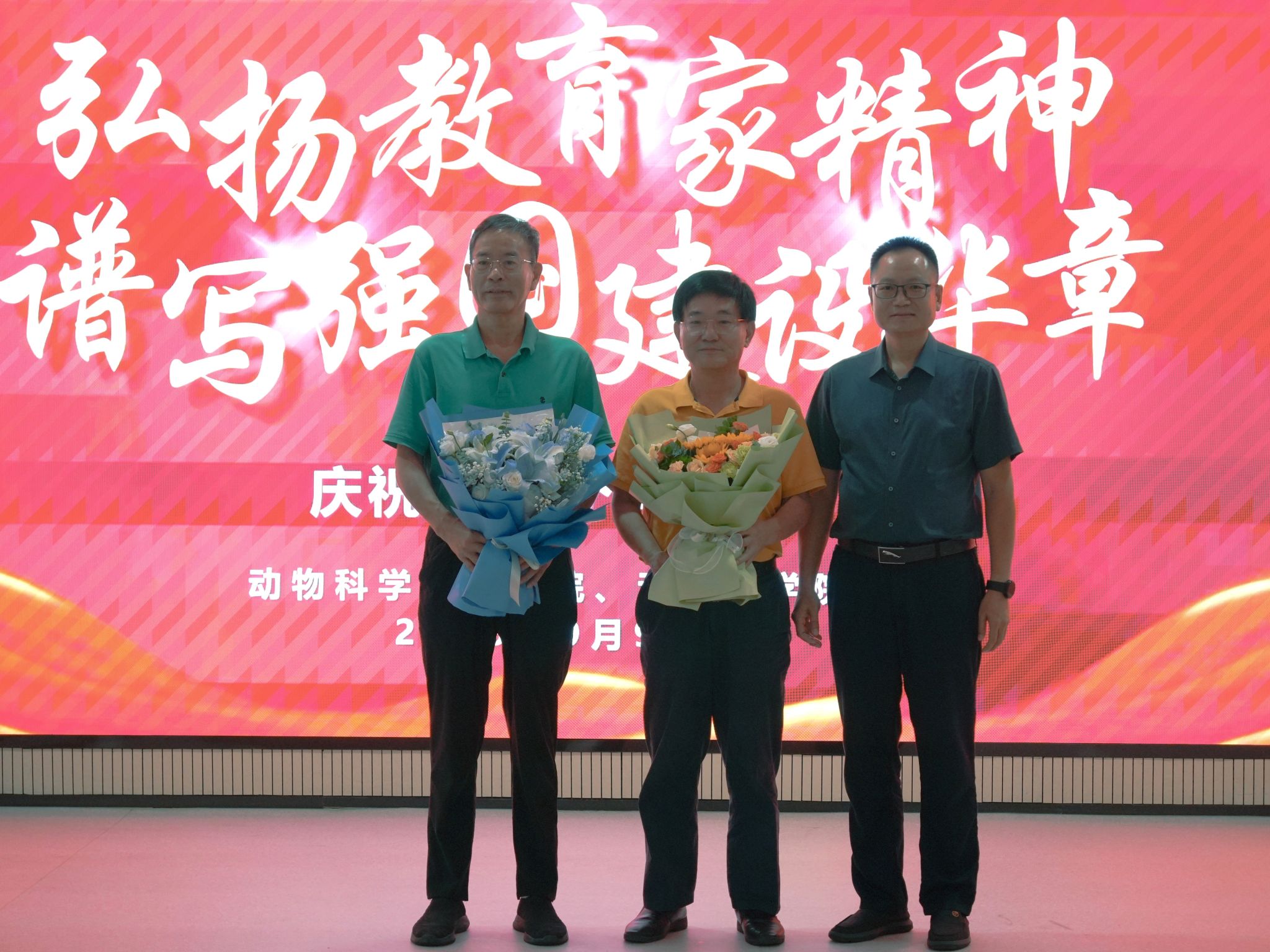 去年教师节以来,于学院辛苦耕耘四十载,在各自领域久负盛名的丁明星教授和杨利国教授光荣退休。刘兴斌在“向荣休教师致敬”环节为两位教授献花,并感谢他们为学院快速发展做出的重要贡献,活动现场响起了经久不息的掌声。