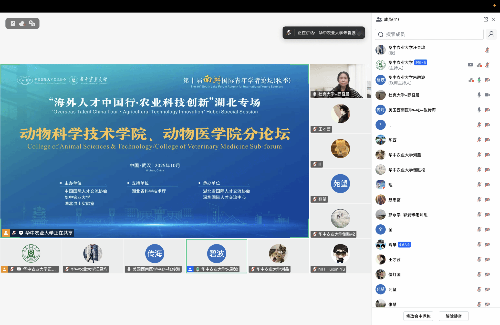 (通讯员:刘东华 汪昱均 摄影:周蕾)10月11-12日,第十届南湖国际青年学者论坛(秋季)动物科学技术学院、动物医学院分论坛成功举行。本次分论坛以线上线下相结合的形式开展,与会青年学者们围绕动物遗传育种与繁殖、动物营养与饲料科学、兽医学基础与临床、生物技术与大健康等前沿领域,分享了他们的最新研究进展。报告内容精彩纷呈,涵盖了从基因编辑技术、干细胞研究、病原微生物与宿主互作机制,到精准营养调控、畜禽健康养殖新模式等多个热点方向,引发了线上线下参会师生的浓厚兴趣和热烈讨论。