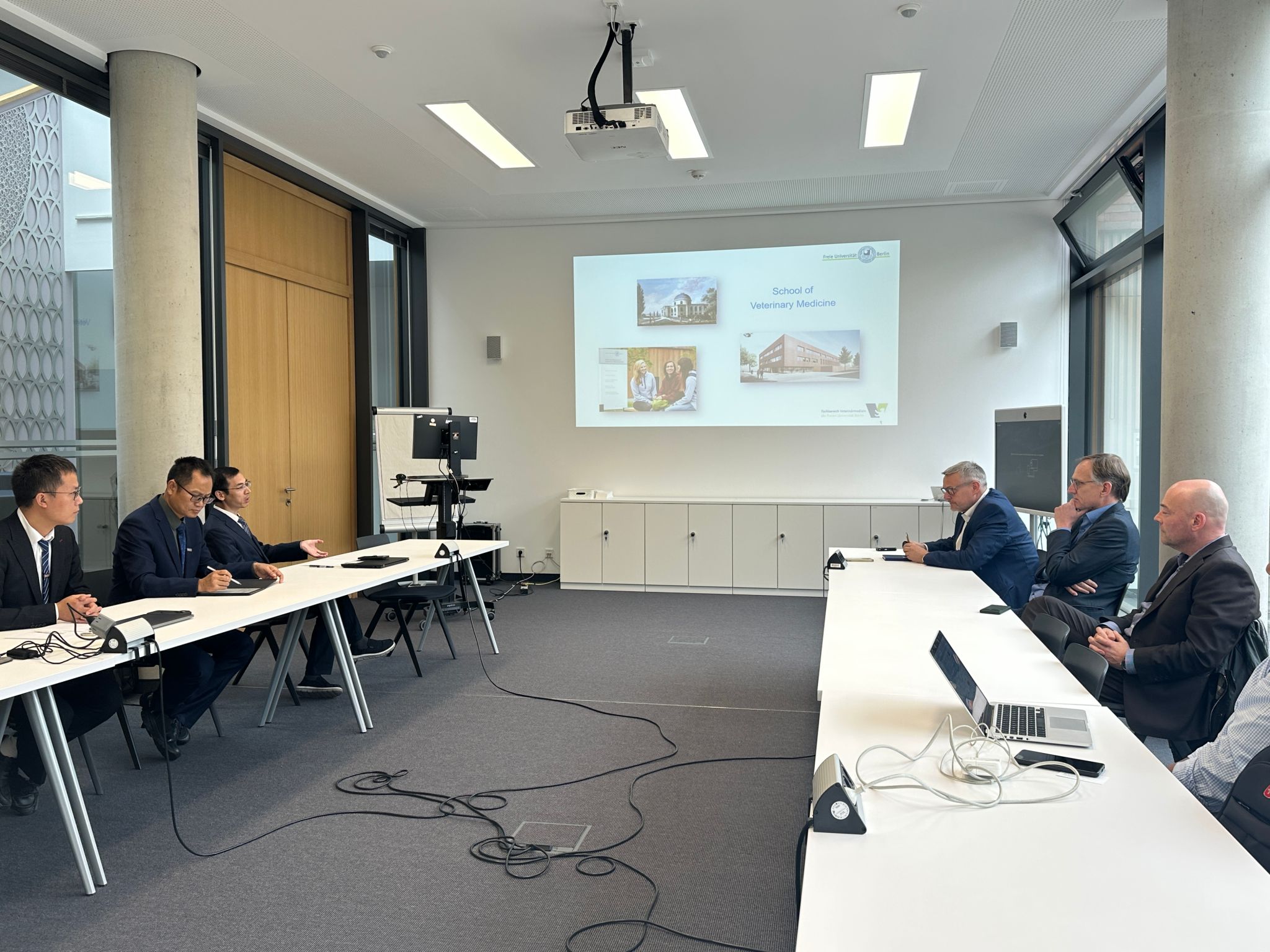 ▲代表团与柏林自由大学兽医学院座谈交流(动物科学技术学院、动物医学院 供图)