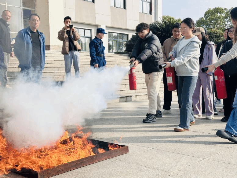 疏散集结后,校园建设与安全保卫部孙勇老师现场讲解了常见灭火器的分类及使用方法,指出了各类灭火器的最佳适用场景,对灭火器使用的注意事项进行了强调。现场师生在专业指导下依次进行了灭火器实操练习。