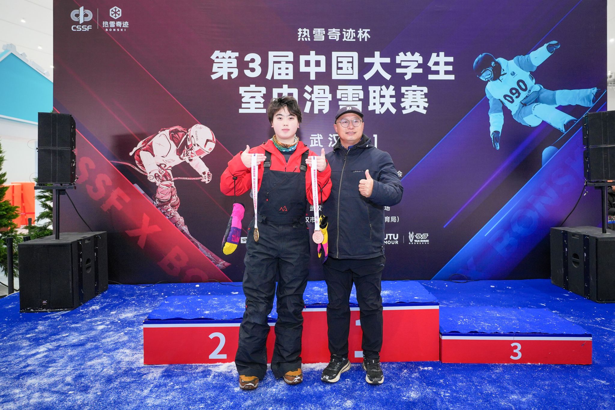谈及比赛,杨谨瑞特别表示了对体育部副主任邹伟与体育部副教授易善立的感谢:“这次能够顺利参赛、稳住心态,离不开邹老师和易老师的全程支持。没有他们跟着我跑前跑后,及时给我打气,我可能没法这么快找到比赛的状态。特别感谢两位老师愿意花这么多时间精力带我参赛,这份支持对我来说特别重要。”他同时表示,赛场中的平稳心态与伙伴们的支持是重要助力,也十分感谢学校提供的参赛机会,让自己得以与全国各高校的滑雪爱好者交流切磋,进一步提升竞技水平。