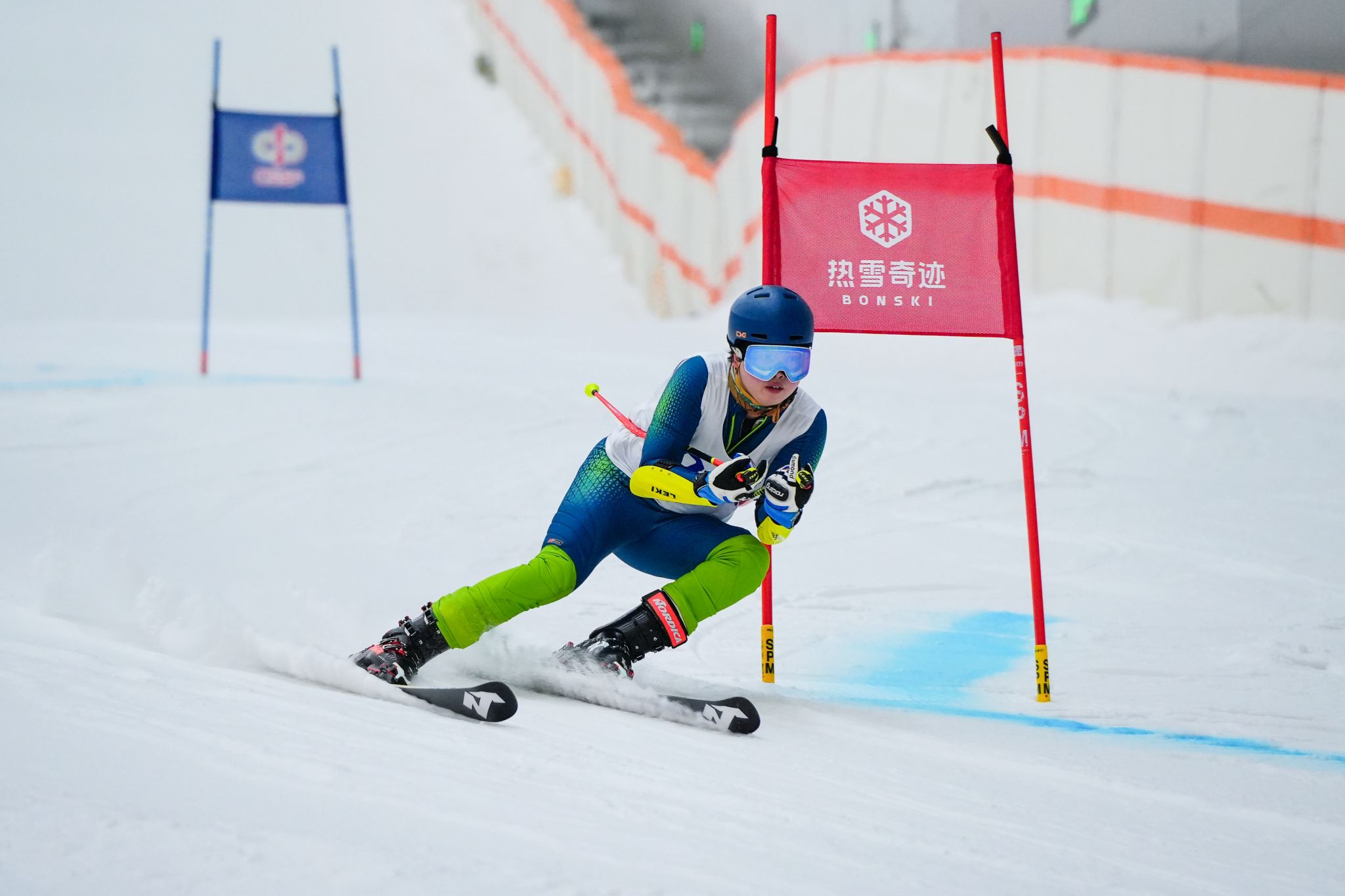 其中,高山滑雪大回转项目赛道为275米长的高级道,杨谨瑞在该项目中全程节奏稳定,重心压低精准穿越旗门,雪板划出流畅轨迹,最终以38.10秒的总成绩拿下男子甲组高山滑雪大回转冠军。单板滑雪大回转项目首轮滑行时,杨谨瑞略显紧张节奏稍乱导致速度受影响,以24.57秒暂列第四。下场后他迅速调整状态,在第二轮滑行中稳住节奏稳步提速,转向干脆利落,以24.50秒刷新表现。关键的第三轮,他延续稳定发挥,精准把控转向与速度,最终以48.55秒的总成绩实现反超,从首轮第四跃升至男子甲组单板滑雪大回转季军。