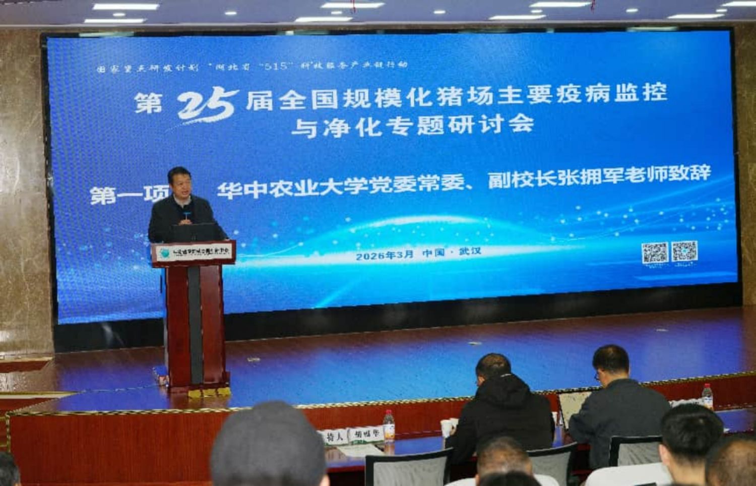 在非洲猪瘟防控、病毒性腹泻综合防治等领域取得了一系列硬核科技成果。他希望以本次研讨会为契机,深化高校、科研院所与行业企业的协同创新,围绕“种源、高效、绿色、智能”加速产业转型,推动我国从养猪大国向养猪强国迈进,共同书写新时代“猪粮安天下”的锦绣华章。