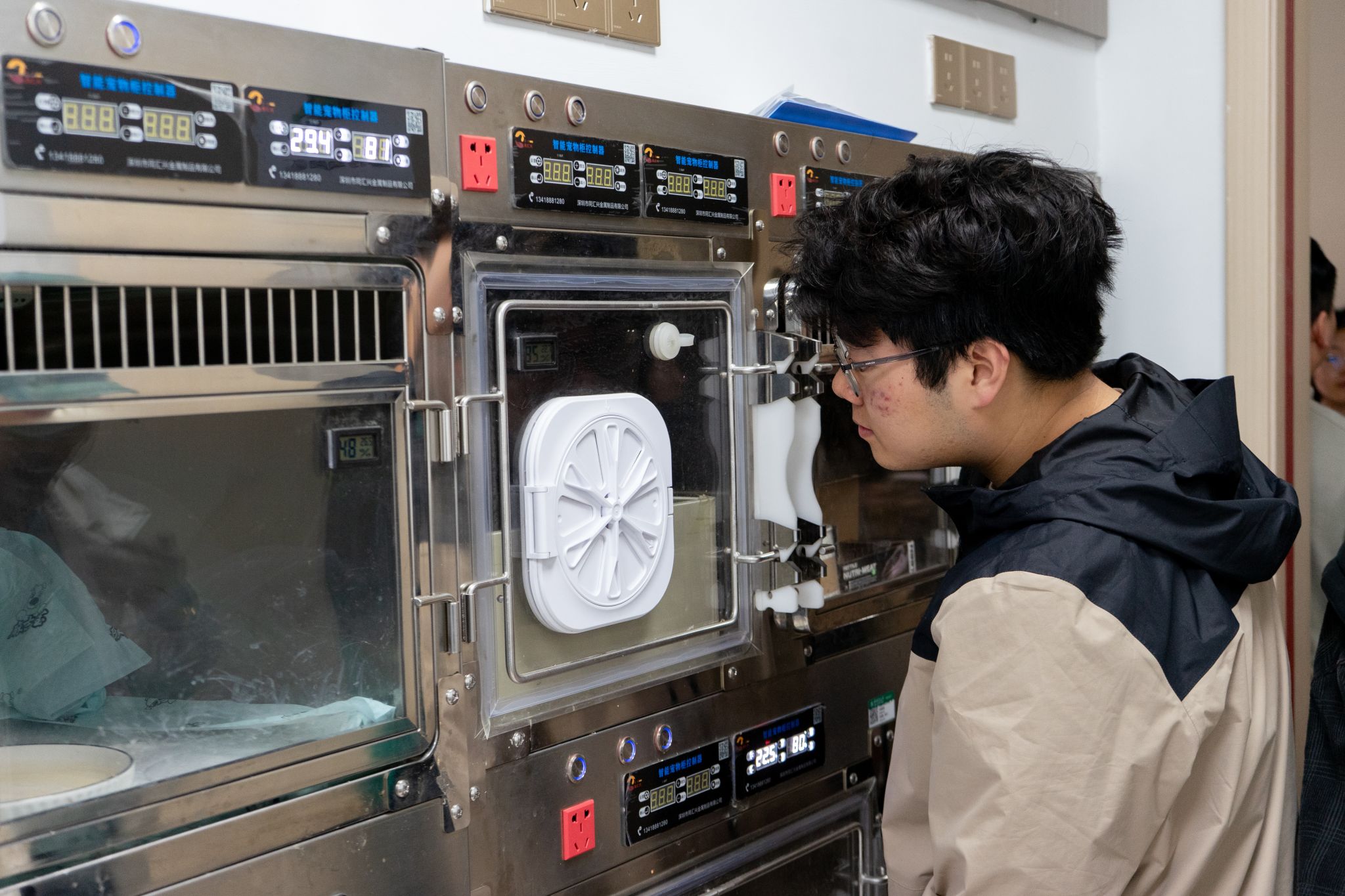 学生观察异宠恒温箱 (通讯员 黄彦博 摄)