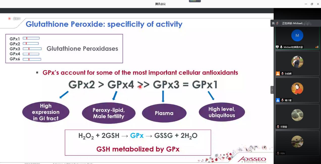 Mickael博士主要介绍了1)氧化应激和氧化还原机制;2)硒代半胱氨酸是行使硒功能的活性形式;3)硒蛋白的定义、种类与生物功能;4)硒的不同营养形式。