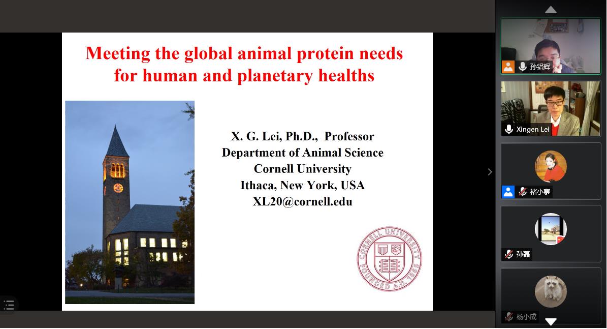 “创新、创造、创业”高端论坛,带来了题为“如何满足全球动物蛋白的需求”的学术报告。校内外50余名师生线上参加了此次学术报告会。报告会由五楼自拍