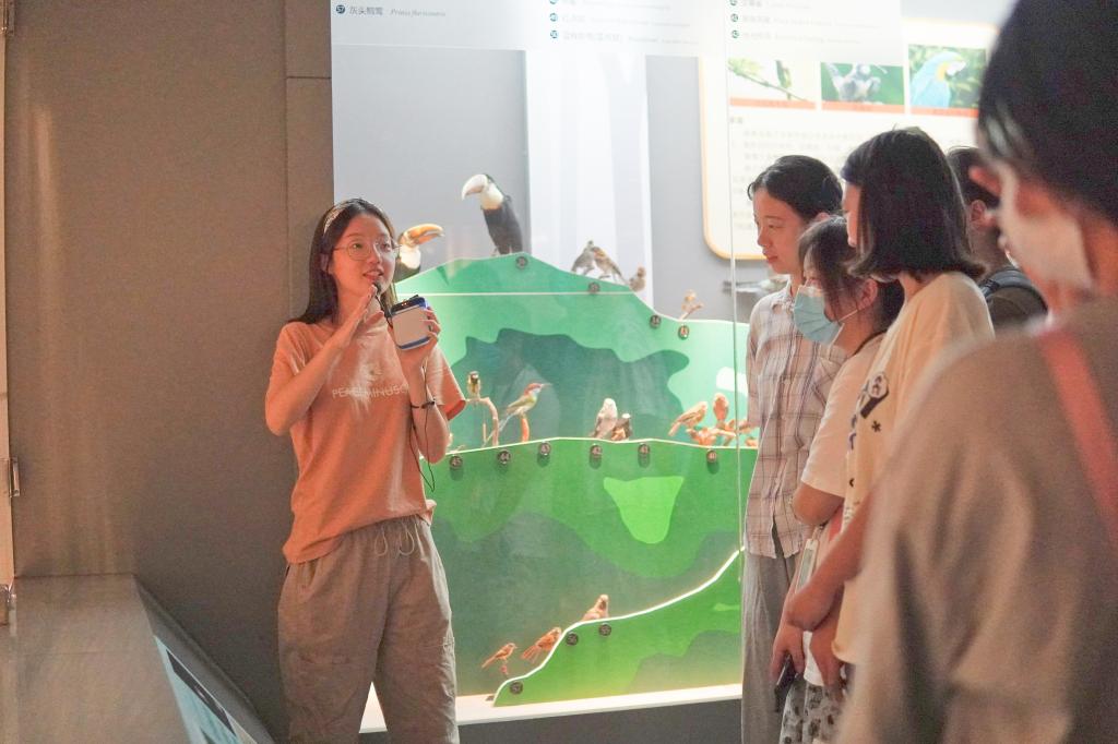 4日上午,“一次观赏动物主题交流”活动在博物馆开展,同学们跟随讲解员在博物馆内畅游动物世界、收获新知。动科2102班的陈政霖感慨道:“我平时也了解一些野生动物的知识,但这次的科普活动让我对野生动物有了更深刻的认识,也更加喜爱野生动物和动物科学专业。”