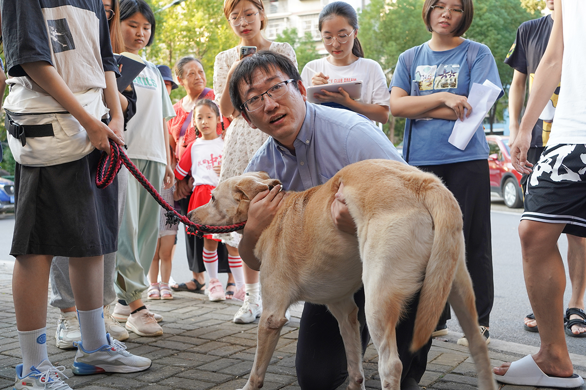 临床兽医学系副教授丁一把伴侣动物知识的讲解融入义诊中,并让参与人员在动物的互动过程中加强科普,引导宠物主人与参与人员关爱动物。