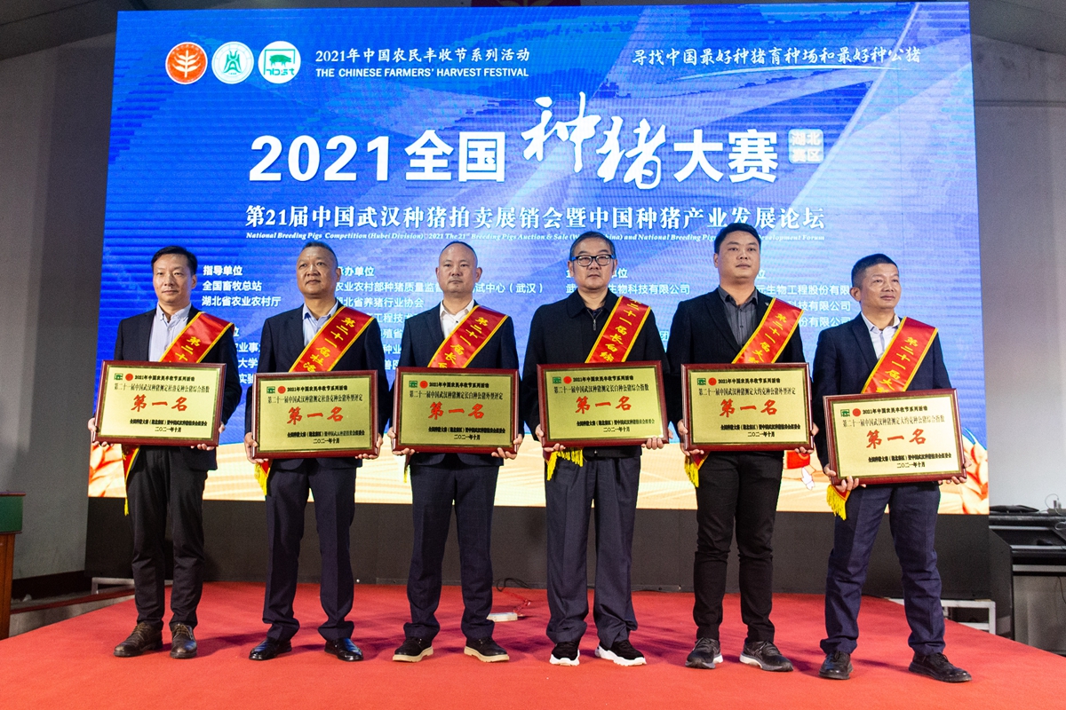 据悉,作为庆祝“2021年中国农民丰收节”的系列活动,主办全国种猪大赛(湖北赛区)暨中国武汉种猪拍卖展销会是一项有意义、事关生猪高质量发展的重要活动。“2021年中国农民丰收节系列活动”全国种猪大赛(湖北赛区)共收测了来自湖南、湖北、安徽、江西、河南、四川等16家种猪企业送测的261头种公猪。经农业农村部种猪质量监督检验测试中心(武汉)在相同环境、相同设备和相同饲养管理条件下近4个月的科学测定,测定结果经综合指数计算排序和专家组外形综合评分排序后,按“综合指数、专家组外形综合评分”的优秀排名遴选出18头特优级种公猪公开拍卖,149头优级种猪参加暗标竞购。此外,组委会还举办了其他系列活动,包括第四届中国种猪产业发展论坛,第十六届牧业人才交流会, 生猪产业发展闭门研讨会等活动,充分促进了产业交流。活动有利于全面展示我国种猪自主育种成果,推动优良种猪的推广、利用,同时,向社会传递重农崇农的价值取向,营造强农富农的浓厚氛围,凝聚爱农支农的精神力量,为勤劳站台,为丰收喝彩,为富民聚力,为推动我国生猪产业高质量发展贡献智慧和力量。