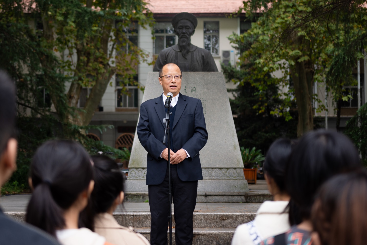 在华中农业大学的前身——湖北农务学堂创办人张之洞像前为延期报到的41名新生举办开学典礼。校党委书记高翅、校长李召虎,副校长青平,相关学院书记、院长,本科生院、研究生院负责人,教师代表参加本次仪典。青平主持仪典。
