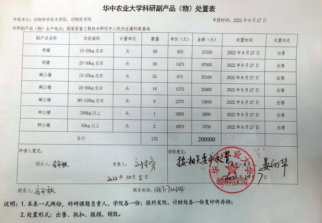 华中农业大学科研副产品(物)处置表