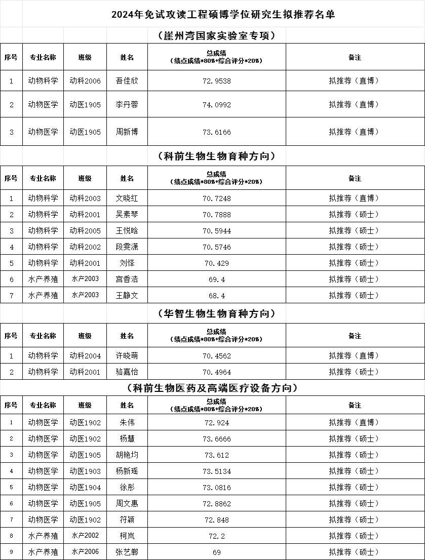 根据有关文件和通知要求,经个人申请、资格审查、成绩核查,现将五楼自拍 2024届本科生拟推荐免试攻读工程硕博专项研究生名单结果公布如下: