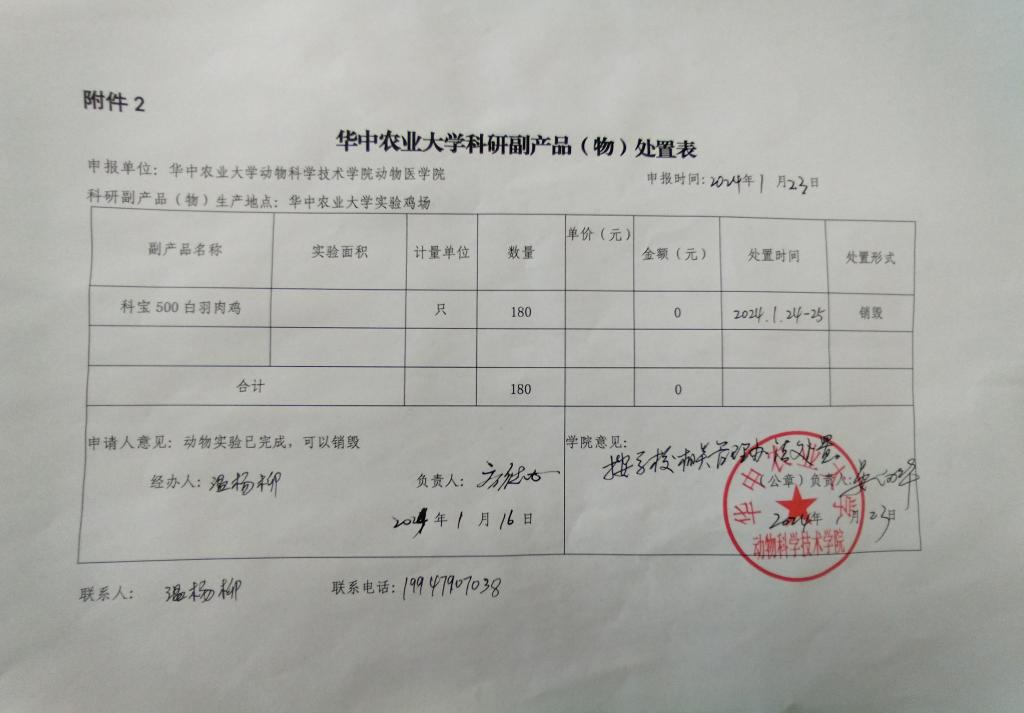 华中农业大学科研副产品(物)处置公示