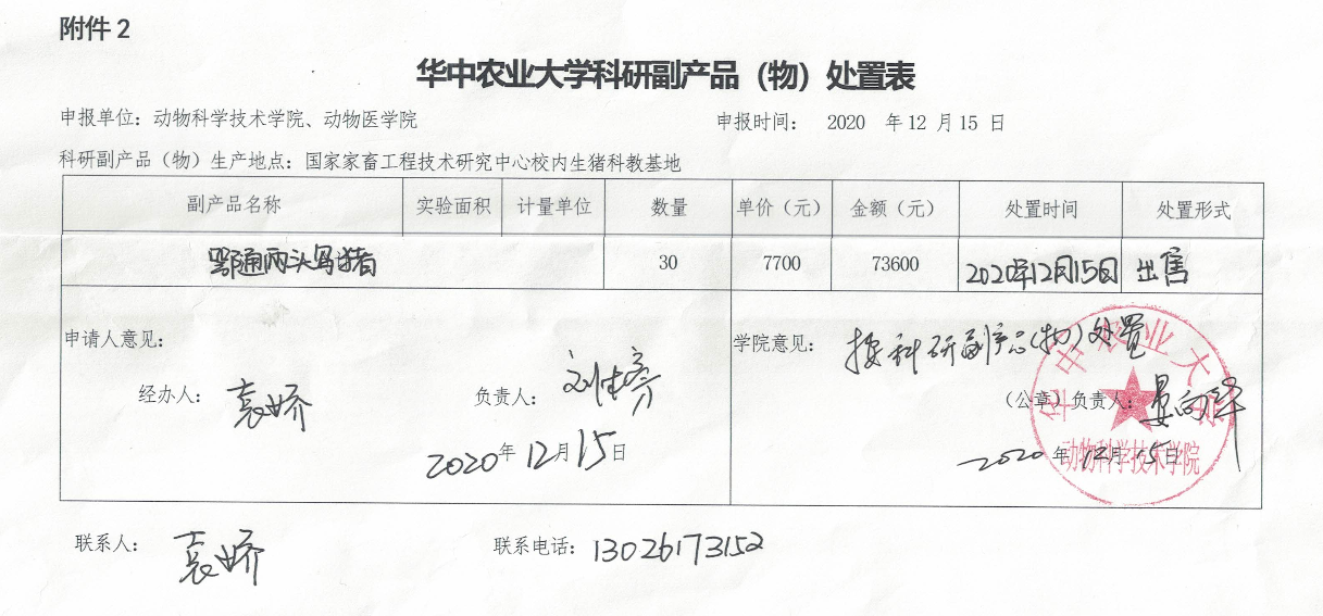 华中农业大学科研副产品(物)处置公示