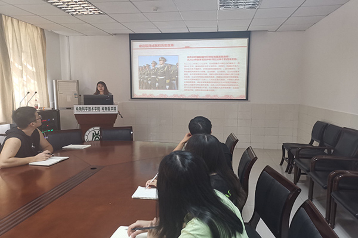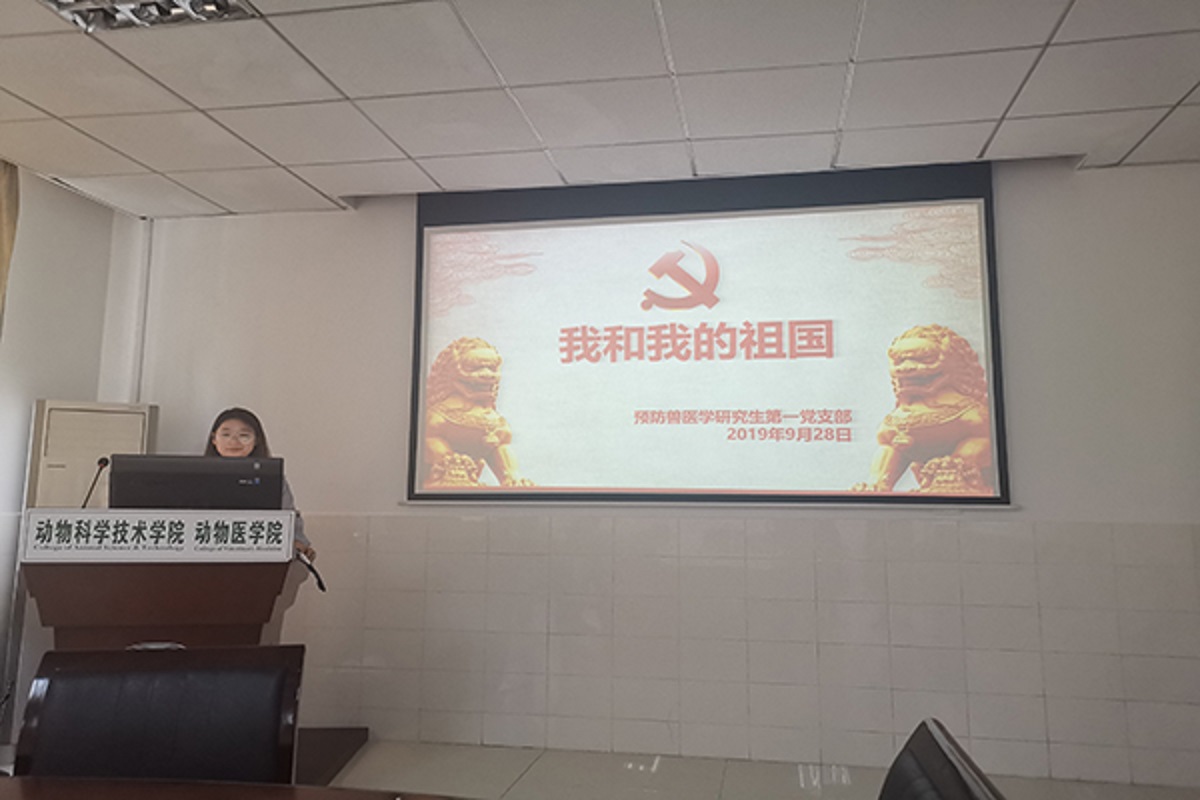 研究生预防兽医学第一党支部在动科楼B105开展了“我和我的祖国”主题教育活动。