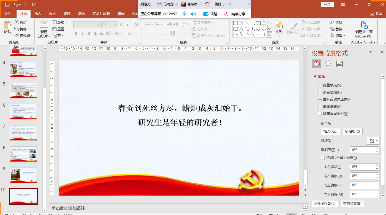 预防兽医学研究生第八党支部通过QQ交流群语音通话和屏幕分享召开以“榜样人物、榜样故事”为主题的读书分享会。“以人为镜,可以明得失”榜样是看得见的力量,学榜样精神,传承民族精神,从书中来,到现实中去。