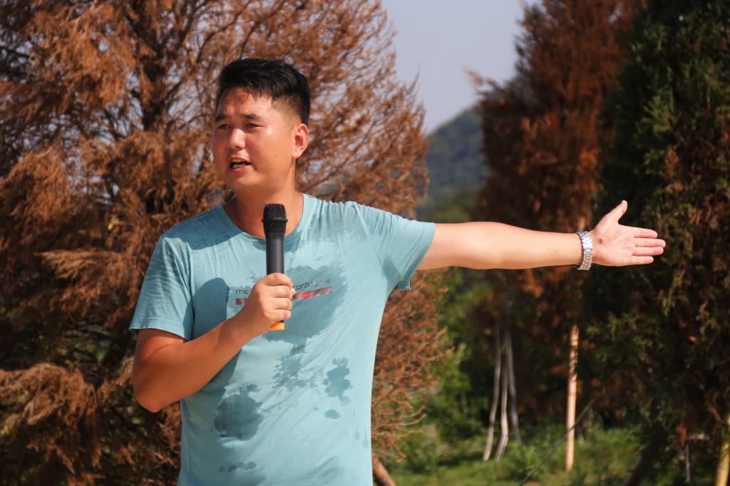 黄龙镇向湾村支部书记向瑞向实践团介绍革命烈士纪念碑