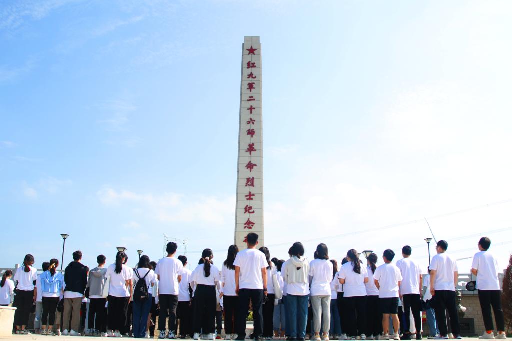 在向瑞的带领下,实践团参观了向湾村红色文化纪念馆,馆内全方位展示了向湾村革命先烈的英勇事迹。随后,实践团前往红九军二十六师革命烈士纪念碑参观。纪念碑位于山顶,静静地俯瞰着整个黄龙镇,实践团来到纪念碑前鞠躬、唱响国歌,对革命先烈致以崇高敬意。随后,向瑞慷慨激昂地向大家细说革命先烈的英勇事迹和向湾村如今欣欣向荣的发展情况。