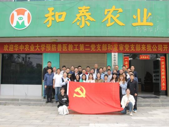 预防兽医学系教工第二党支部联合发审党支部、预防兽医学研究生第一党支部、第八党支部、第二十九党支部赴麻城市与麻城市和泰农业有限公司党支部联合开展主题教育活动,共同探讨精准养殖,实现高校与生猪企业精准对接。
