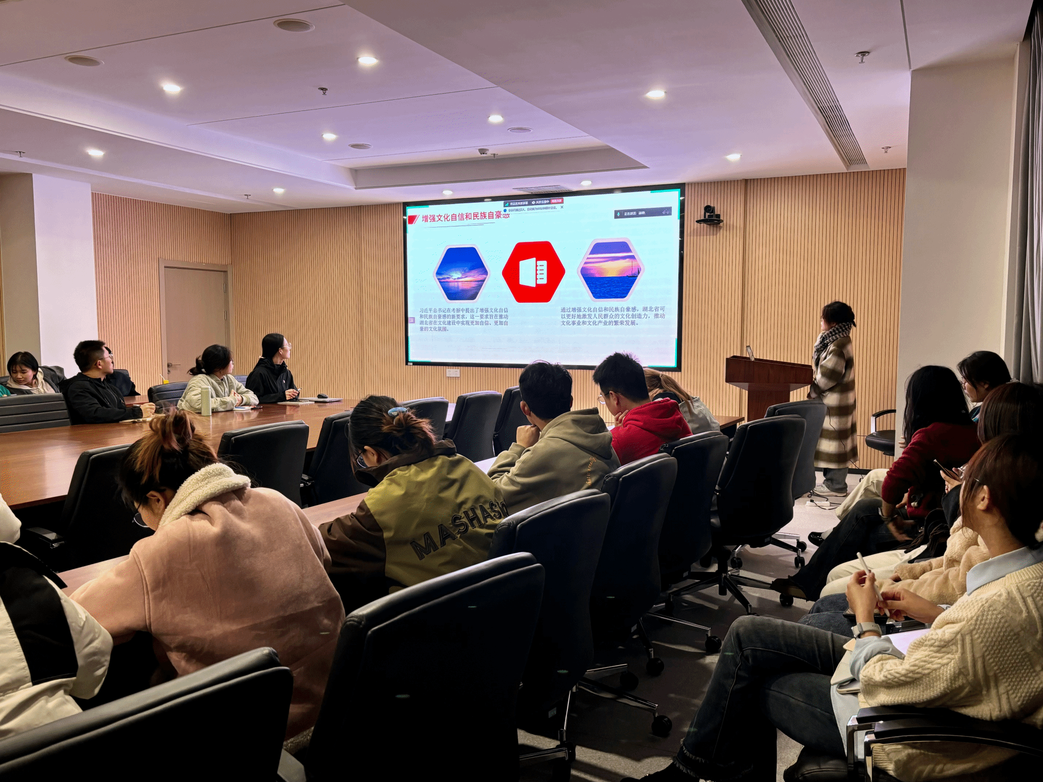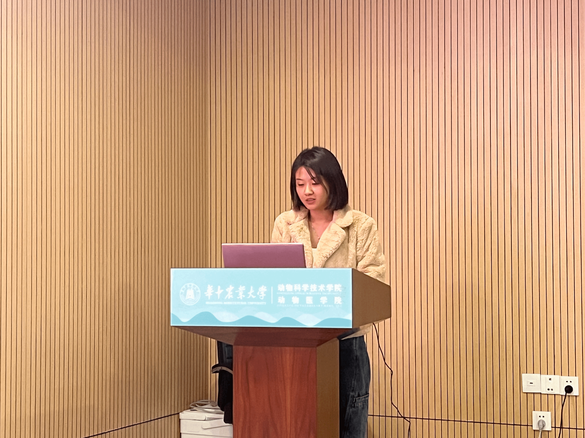 E26王艺淇同志带领大家学习了习近平总书记在中共中央政治局第十七次集体学习时的重要讲话精神、习近平给中国国际大学生创新大赛参赛学生代表、给中国海洋大学师生的重要回信精神。她讲到,习总书记强调,要坚定不移走中国特色社会主义文化发展道路,她以北京园博园、“村超”、山西应县木塔及“狮山欢乐节”为例展现文化的魅力。她提出,习总书记指出的“我们要着力激发全民族文化创新创造活力,探索文化和科技融合的有效机制,始终坚持文化建设着眼于人、落脚于人,要在创造性转化和创新性发展中赓续中华文脉,不断提升国家文化软实力和中华文化影响力”是我们动物医学专业研究生应该时刻牢记于心的,我们应始终秉持着“敬佑生命、守护健康”的使命,在做好自己工作的同时,推动我国农业和医学的发展作出努力。她号召大家努力学习、加强科研、投身实践、不断创新,进而保障动物的健康和公共卫生安全,减少动物疾病的传播,保护食品安全和人类健康,投身中国农业发展,为中华民族伟大复兴贡献自己的青春力量。