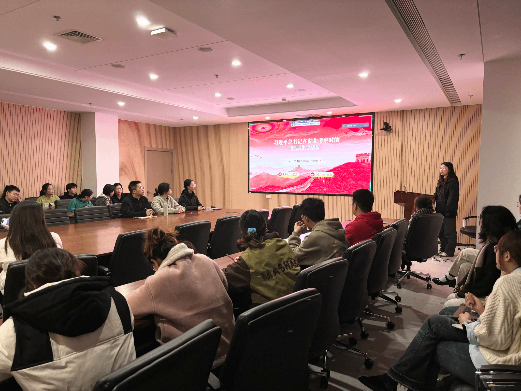 E14宋雯雯同志领学了习近平总书记在湖北考察时的重要讲话精神。她讲到,总书记此次考察强调鼓足干劲、奋发进取,提出“久久为功、善作善成”的要求,强调了持续努力、不断进取的重要性。习总书记在几个方面提出要求:在湖北发展方面,提出城乡融合发展和乡村全面振兴的新要求,强调推进长江中游城市群联动发展,提出提高农业发展质量和效益的新要求,强调巩固拓展脱贫攻坚成果;在文化保护与发展方面,提出加强考古研究和文物保护的新要求,强调弘扬中华优秀传统文化,提出增强文化自信和民族自豪感的新要求;在改革与发展方面,提出抓改革促发展加强党的建设的新要求,提出创造经得起历史、实践和人民检验的业绩的新要求。宋雯雯总结到,习总书记亲临湖北考察并作出重要讲话,充分体现出对湖北人民的如山厚爱和似海深情,在湖北全面建设社会主义现代化新征程中具有重大的里程碑意义。我们要领悟总书记的谆谆教导,奋发图强。