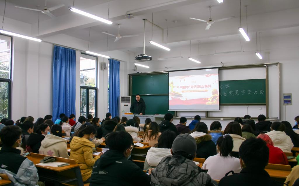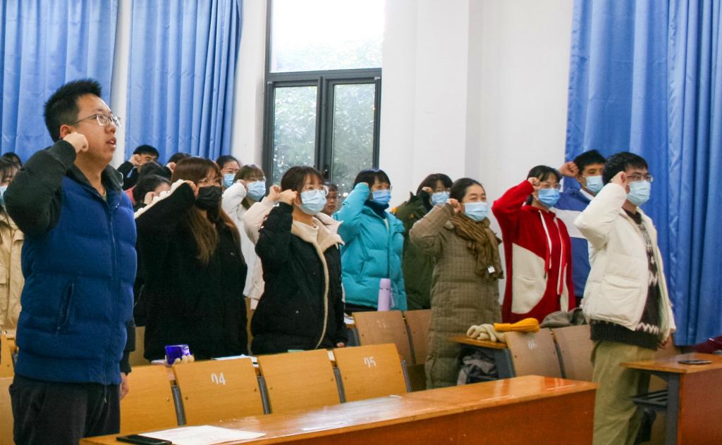 于四教C102教室召开本科生预备党员入党宣誓大会。学院本科生党建工作负责辅导员谭力铭主持会议。