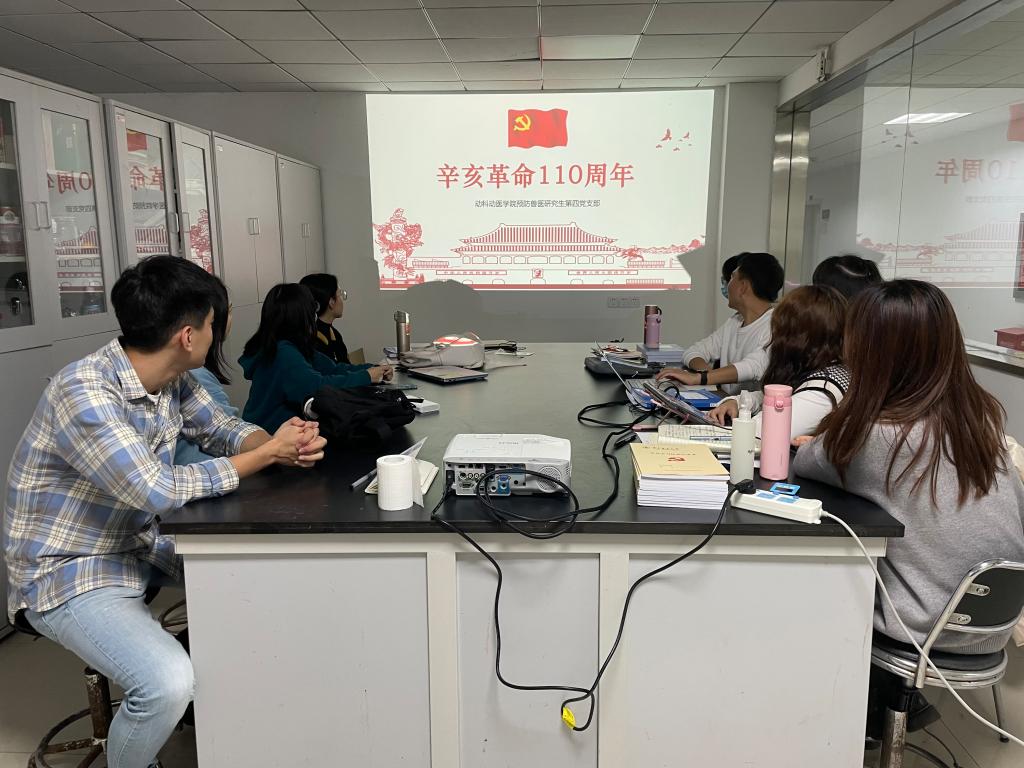 预防兽医研究生第四党支部于协同408开展“学习在纪念辛亥革命110周年大会上的讲话”主题党日活动。会议由支部书记裴涛主持,支部成员参与。