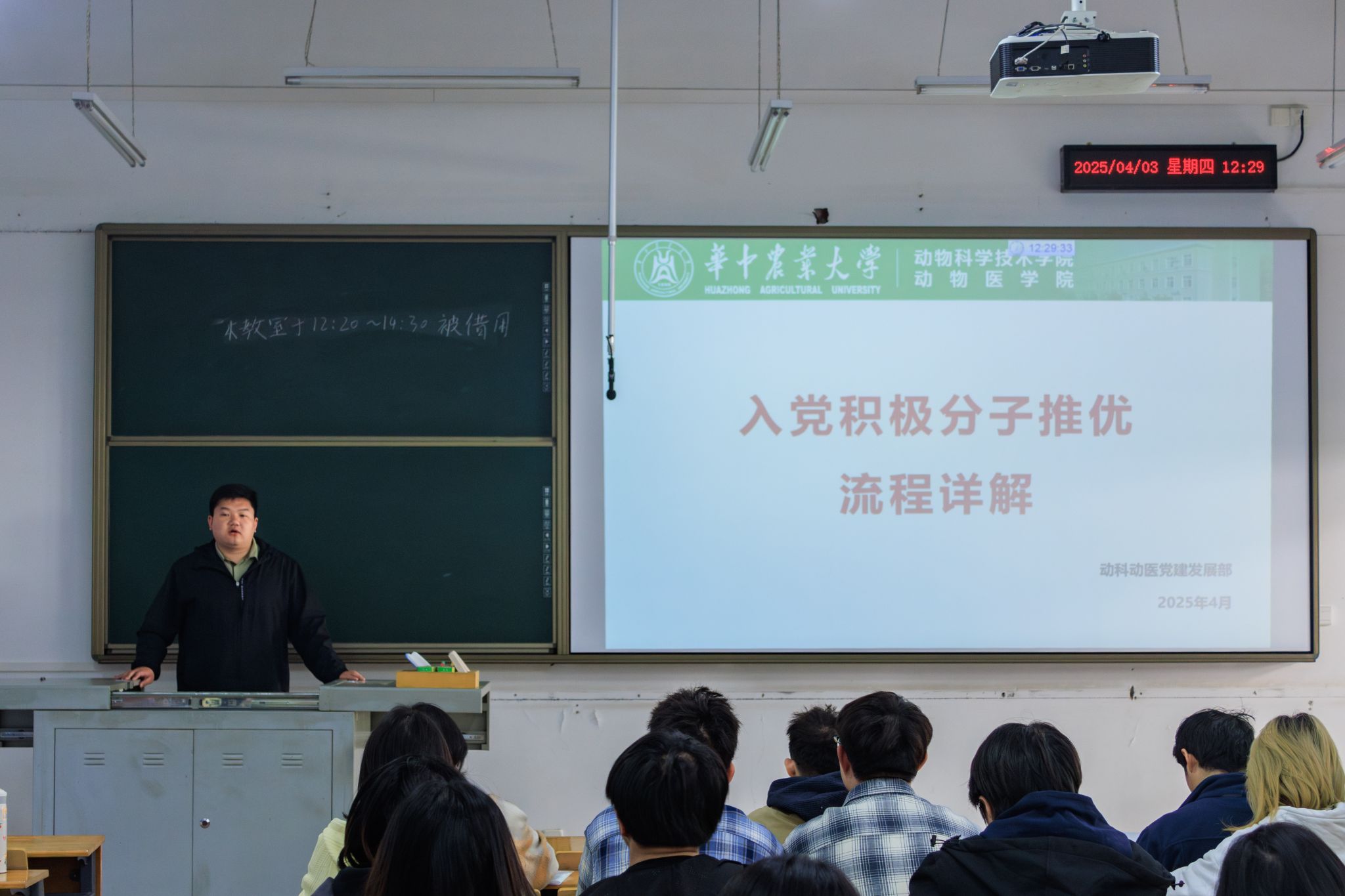 2025上半年入党积极分子推优流程讲解会于四教C108举行。学院本科生辅导员程唐煜、各党支部副书记及各班级团支书参会。本次会议由学院党建发展部工作人员李瑞主持。