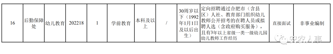 考试采取笔试和面试或相结合的方式,其中招聘博士或副高以上人员的,简化程序直接进行面试。鉴于幼儿教师岗位定向招聘通过合肥市(含县区)人社、教育部门组织的幼儿教师公开招考的在聘人员或拟聘人选(含政府购买服务),不再安排笔试,直接进行面试。