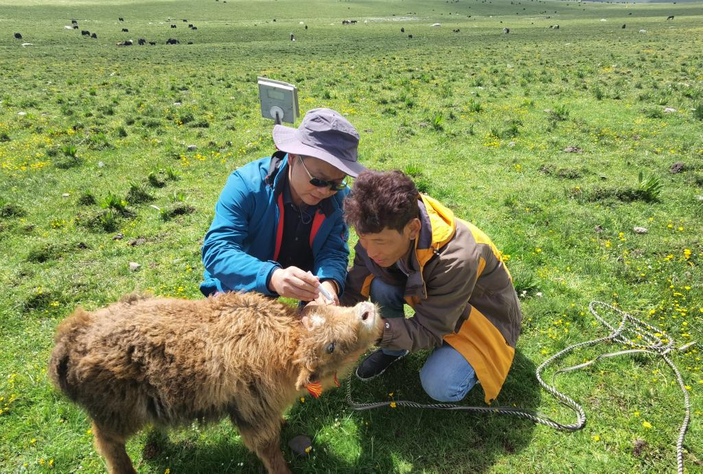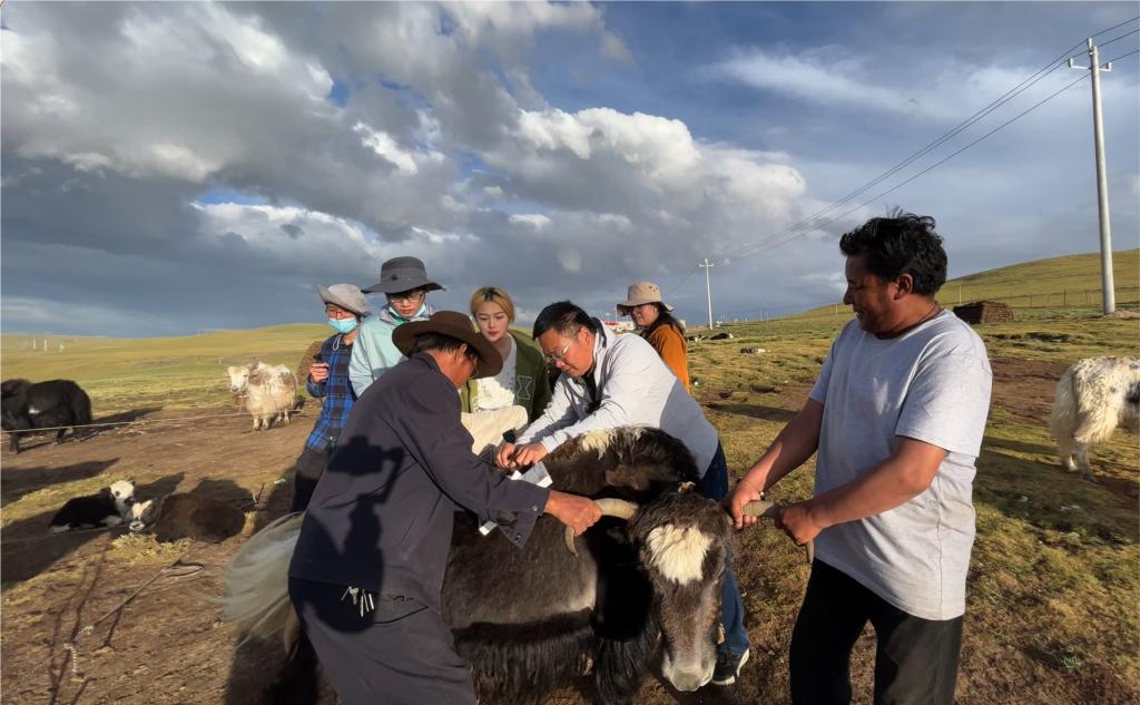 李家奎带领同学们在藏区指导牦牛疾病防控
